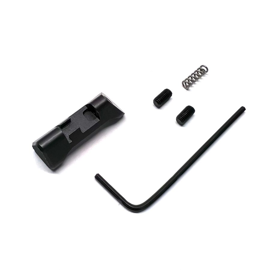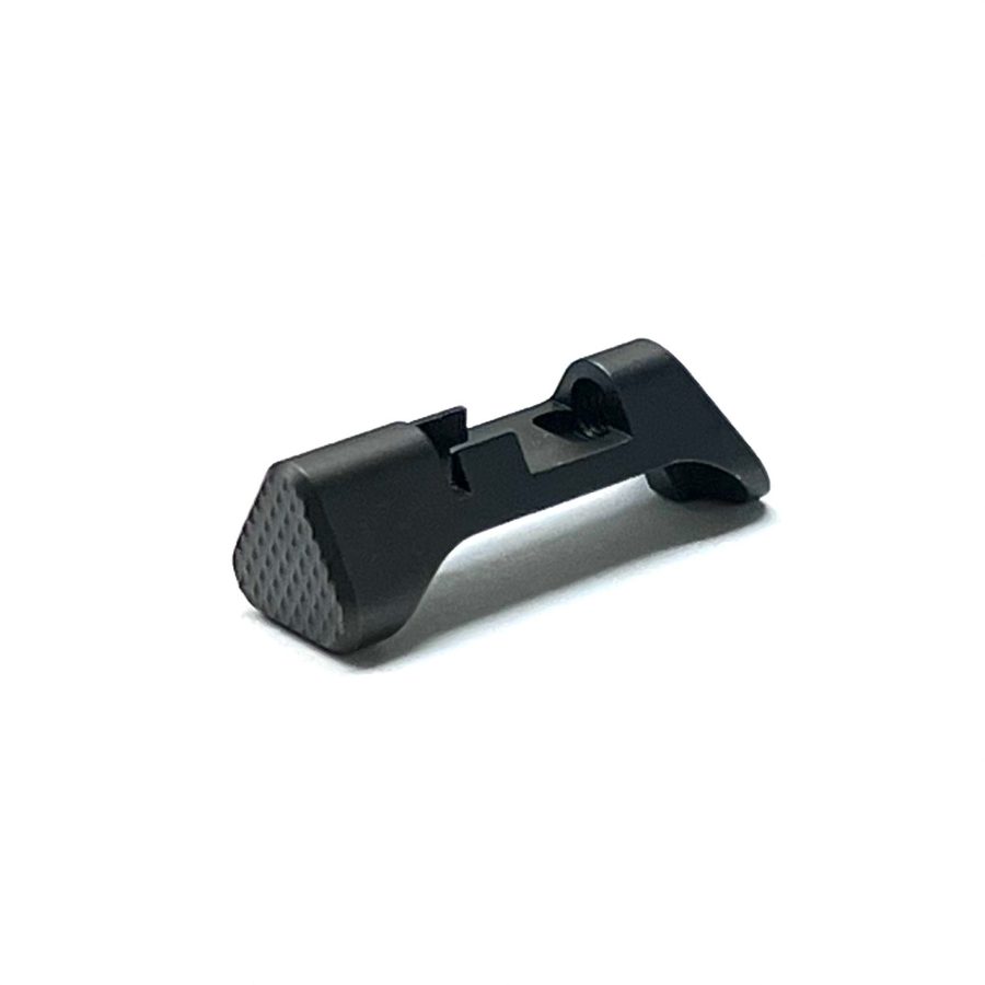 Made as a direct replacement for the oem Macro mag release to be installed on all factory and aftermarket grips/frames that require the “standard” catch.  Extended over standard P365 mag catches and maintains the same height as the factory macro catch but with a flat button profile for improved reach.